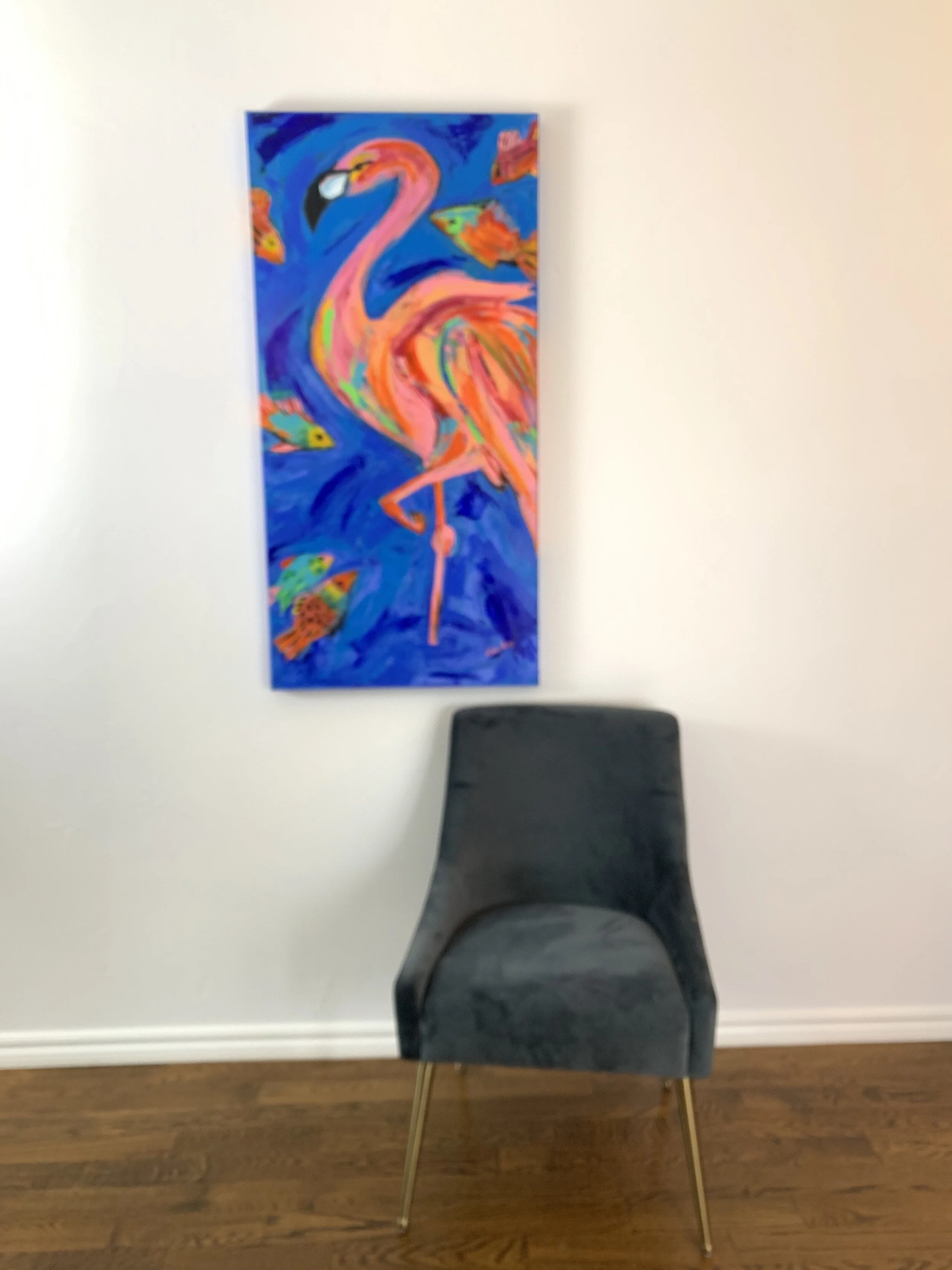 The internal conversation every woman has about having children, or not is honored in this special series created for my first solo show entitled The Mother Nature. This set of 12 six x six inch nests was created as a display to be hung like a clock telling time. Each piece has a different number of eggs in the nest. Please choose carefully from the remaining nests. Each is painted in differing colors and all are framed in a thick gold floating frame making the finished size 7.5”x7.5”